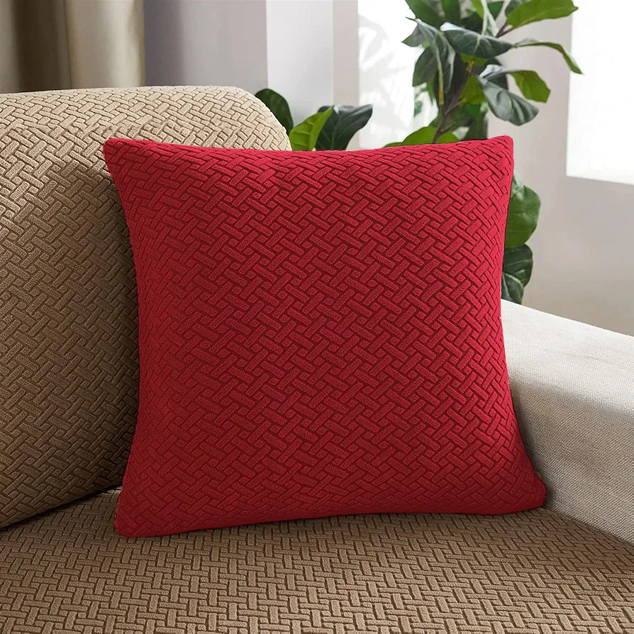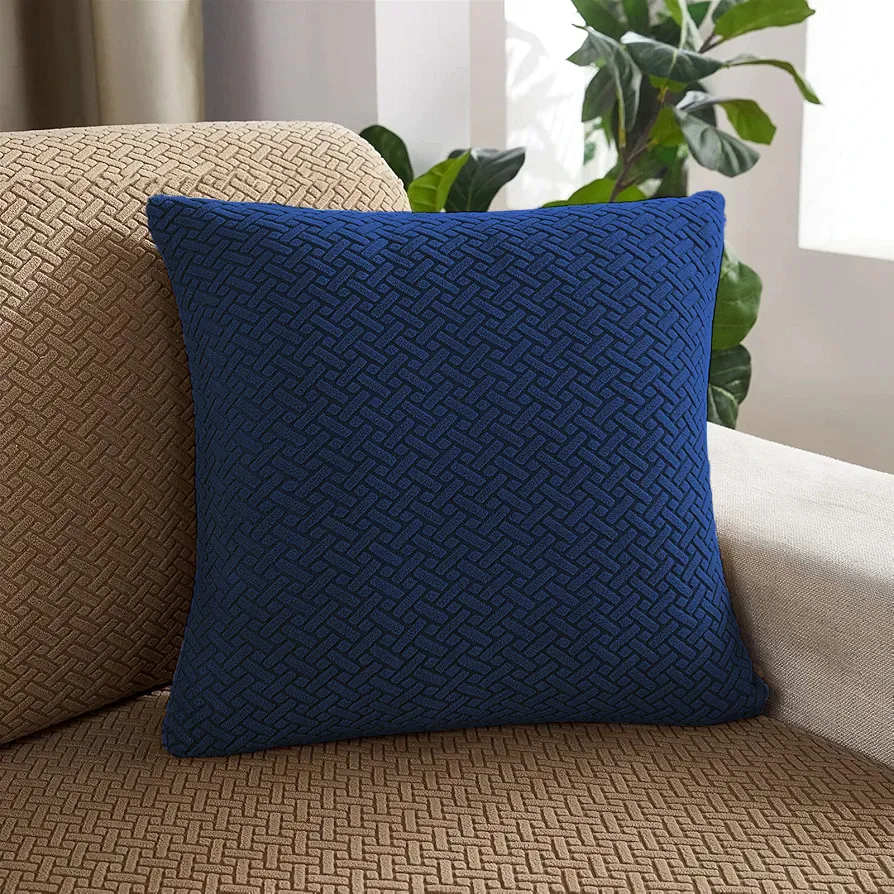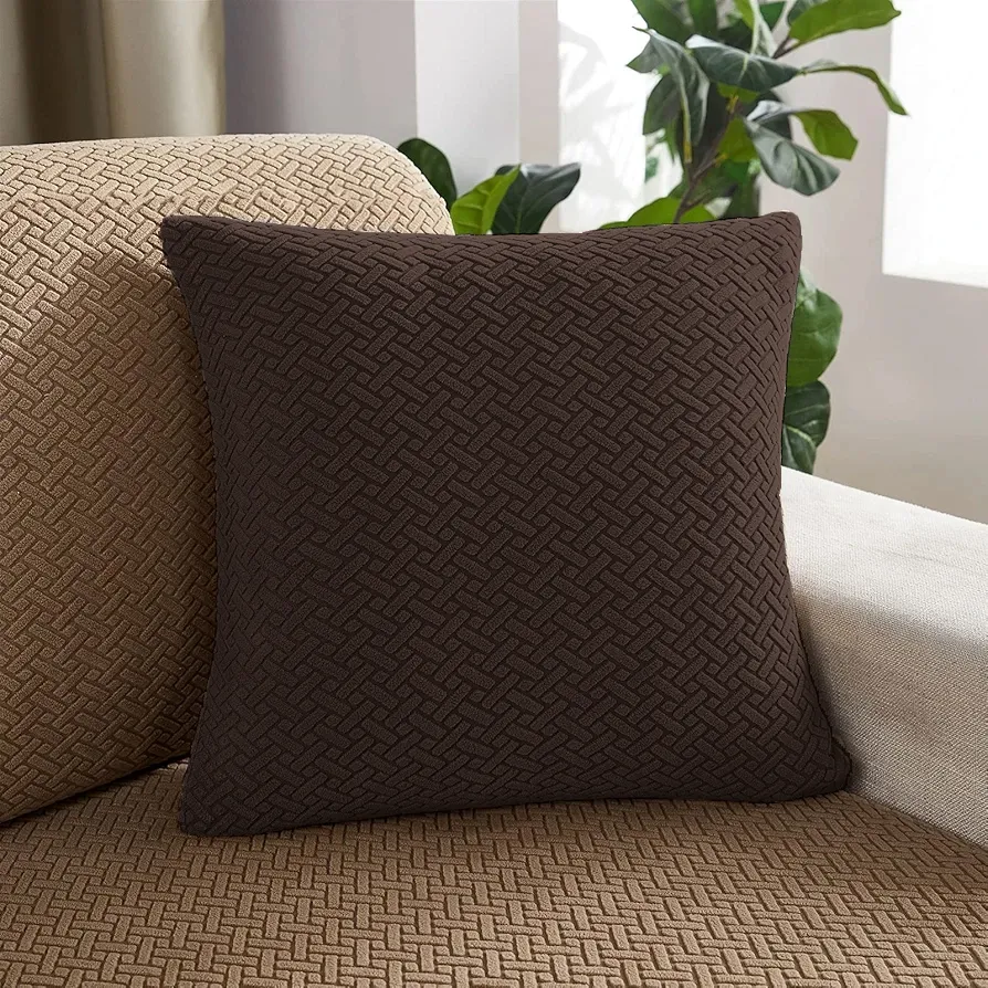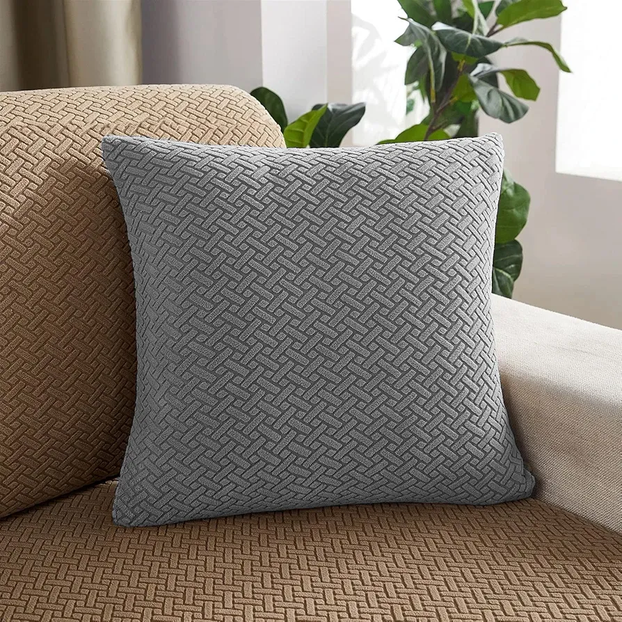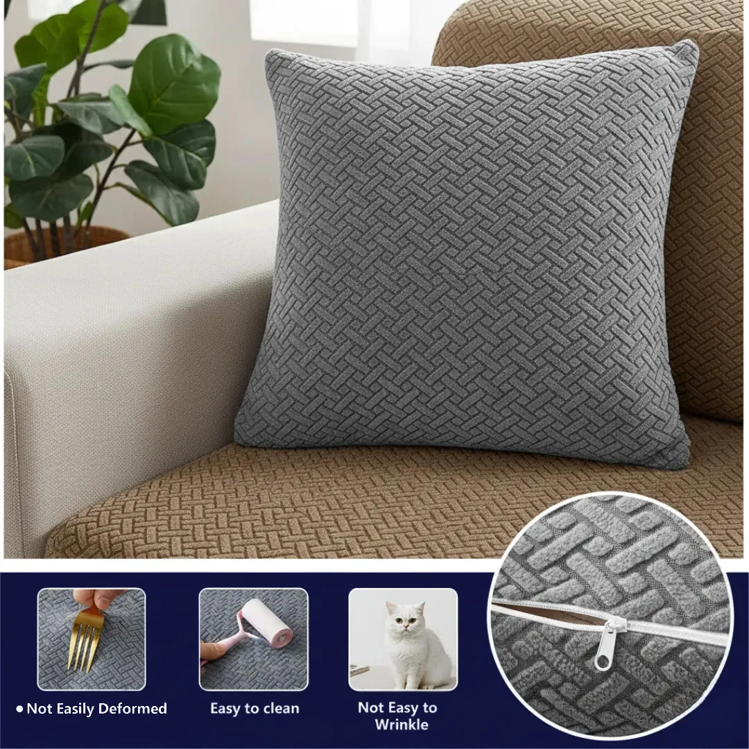 Q1: What fabric material is used for these cushion covers? A: These covers are made from premium Jacquard fabric. It features a thick, stretchable 3D checkered texture that feels soft like velvet but is much more durable and wrinkle-resistant.